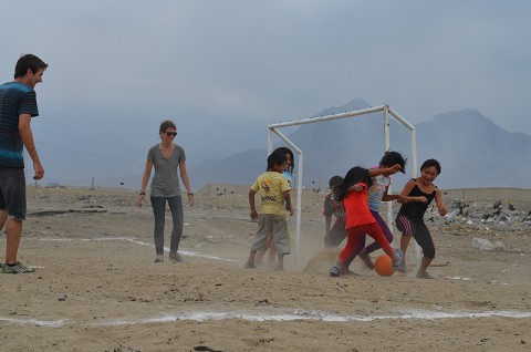 .built a soccer field in the sand at the dump community in Trujillo, Peru.