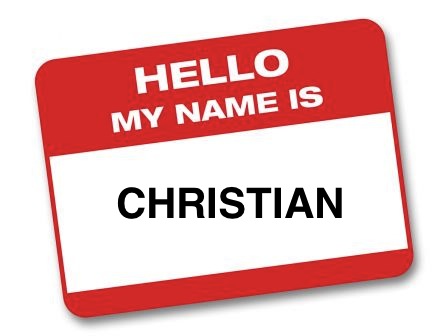 Christ with a nametag that reads “Christian.” God wants to equip new followers with a sword and a shield