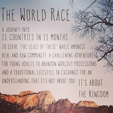 I am headed off on a new adventure this year and am asking for your support through your prayers. Prayer is so powerful and that is the biggest gift you could bless me with. So please pray for me! I have always felt a call on my heart to go out and mission as the apostles did, to bring the love that I’ve been blessed to experience and share it with our brothers and sisters throughout the world. I am finally following that call and have found a ministry that matches perfectly with my sense of adventure and eagerness to work with people in all walks of life. I will be leaving in October to serve with Adventures in Missions (ADV) on the World Race, an interdenominational missions organization that has sent over 100,000 people into the mission field since 1989. Over the course of 11 months I will be serving in Malaysia, Thailand, Cambodia, the Philippines, Zimbabwe, Zambia, Malawi, Ukraine, Romania, Albania, and Greece. In each country, my team and I will be partnering with churches and ministries in local communities to preach the Gospel, plant churches, work in orphanages, minister to women and children trapped in prostitution and human trafficking, and share the Father’s love. I hope that it will lead me to live out my faith more fully in my everyday life back here in the States and give me a better ability to let God use me for His greater good and His greater plan. I cannot wait to go out and be like the disciples of Jesus, away from my home, fighting for our Savior to conquer the world. I am so excited for the possibilities of being a beacon of light to His people and hoping that it will mold me to live more simply with a better ability to incorporate faith into every moment of life. I know that God wants me available 110% and the only way that can be done is if I leave behind my home, the comfortable world and life I have here, the people I love and am used to, and abandon the plans I think best for me and trust in God’s plan for me. I know in my heart that this is God’s plan for me, the next step He wants me to take.
