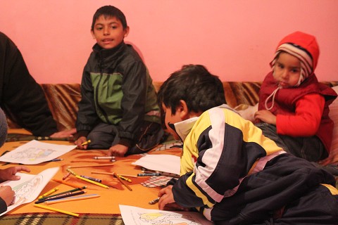 The four of us drove up to this little, quaint house and the kids started running towards the car waving at us. We got out of the car and were greeted with hugs. As we walked into the house we took our shoes off and entered a little bedroom where the kids sat on the bed and stools were brought in for us to sit on.