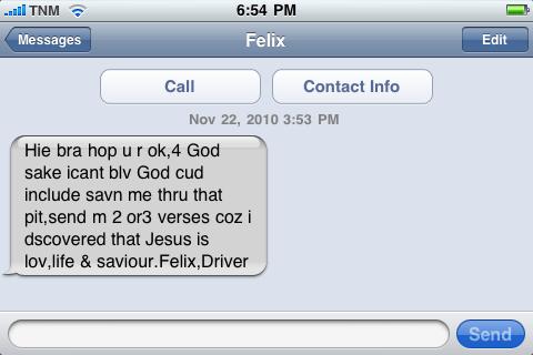 About 12 hours later we received a text….