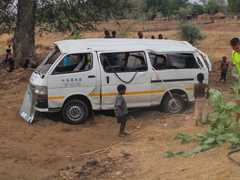 didn’t have a neck brace, so I steadied Tommy’s neck while the Malawian’s and a