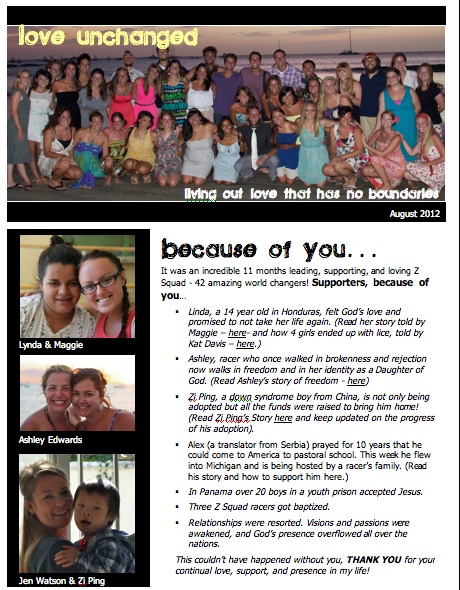 It is because of you that lives have been changed! Please know that everything the Lord did through myself and my squad, you receive as well. You are a part of this journey and I want to share a few pieces of the Kingdom you were a part of this year….