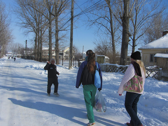 On Thursday, my ministry in the afternoon was to go with my teammate Jessica to a children's Bible study in one of the gypsy neighborhoods. We were to meet with a woman named Veronica and walk to the house where the Bible study would be held. I really have gotten used to the cold weather. While it doesn't feel warm by any means, I enjoy our walks to ministry. I love seeing all of the buildings covered in snow and icicles. I try to smile at people as they walk by, even though I have been warned that it is not in their nature to smile back. It's still worth a try!