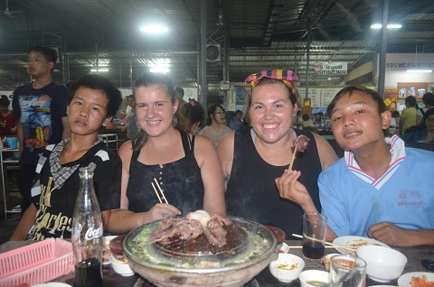 The boys took us to a BBQ Thai Buffet to say goodbye. This night was amazing. Never in my life have I been treated so well and this was by two 16 year old boys. Annie and I sat with two of our boys. They made all of our food on the thai grill and fed us like queens. They would not let us get up it get anything. I made a statement once about how I like steak and two seconds later there came a huge plate of steak. This was a night to remember.
