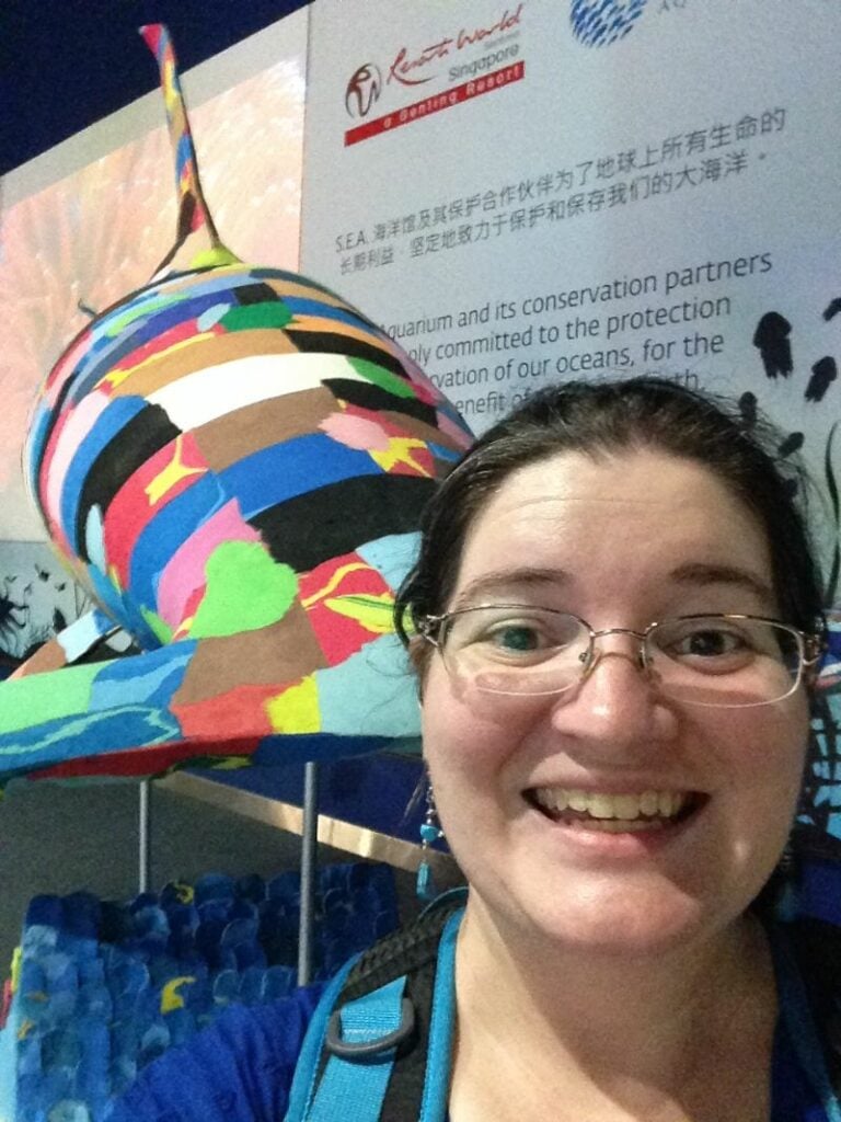 Pay the taxi by credit card. The doors wouldn’t unlock until the payment processed. That wasn’t weird at all. Wander about some to find the ticket counter for the S.E.A. Aquarium.