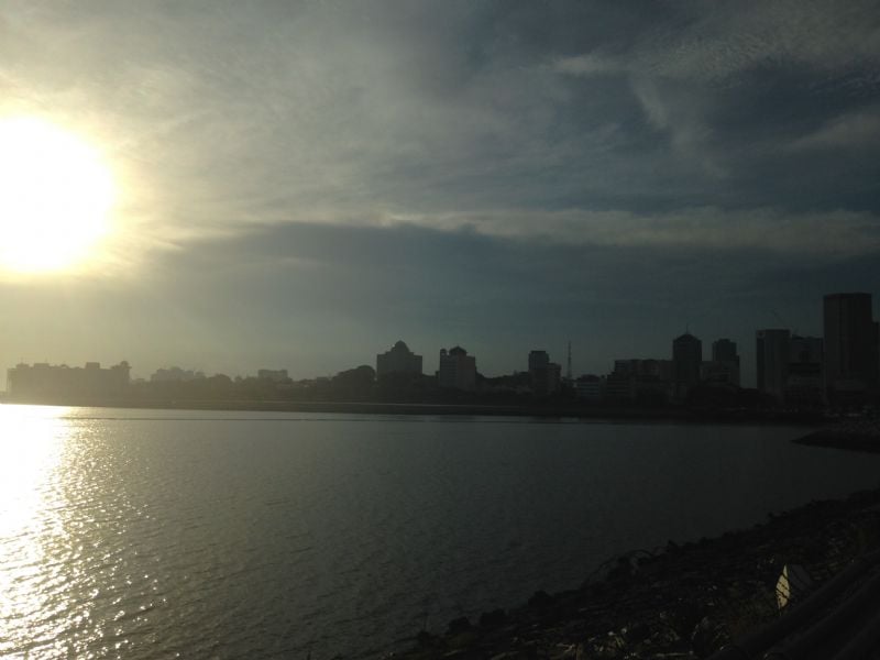 The sun beginning to set over the Malaysian skyline as we crossed the border.