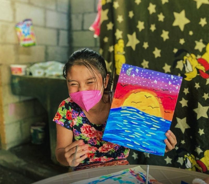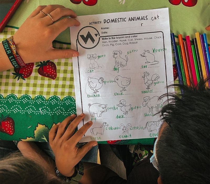 My team along with another team on my squad are partnering with an organization called One Way.  One Way teaches soccer and gives different classes to children in one of the communities in Guatemala.  They used to bring all the kids on to the soccer field and teach them there but since Covid regulations came out they have not been able to do this.  Instead they walk around to each of the houses and give classes in the kid’s homes and if available they still sometimes teach soccer on the field.  My team splits off into groups of two and go with one of the One Way volunteered teachers.  We either give English lessons (which is very helpful since english is our first language) about animals, colors, numbers, the alphabet, or simple objects and verbs.  Sometimes we give art lessons, which is my favorite, or we help with the children’s school work packets.  One Way also provides opportunities in this community for families to make money.  Whether that be by giving them chickens for one way to then collect the eggs, sell them, and give the money back to the family. They also give out food carts to some of the families and provide them with the supplies needed to sell their food like chicken,  sandwiches, or granizadas.  One Way also provides a meal for the children once or twice a week. They give out food bags, water filters, or other supplies that the families might need.