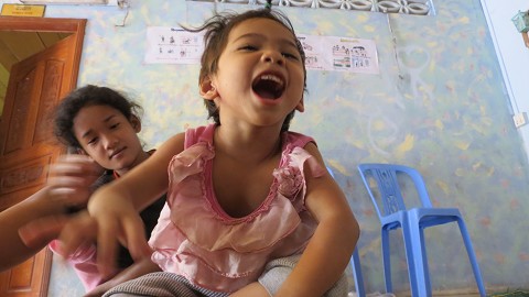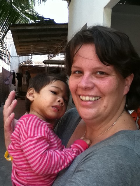 The first day we walked into Cambodia Hope Association Orphanage, I spotted her in the corner lying on the ground.  I headed straight for her.   She was wearing only a diaper, part of her hair pulled up, and drool running down her chin.  She was beautiful!!   Her name is Deborah and she is 5 years old.  Deborah’s mom is a prostitute, and her dad was a customer.  Deborah is a fetal alcohol syndrome baby.  When she was born her mom took her to her grandmother’s and left her.  Deborah’s grandmother pulls a cart behind her all day collecting empty plastic bottles.  She had no money for food, so for the first 3 years of her life all Deborah was given to eat was water.  She was rescued and brought to the orphanage only after her grandmother had decided to throw her away in the garbage so she didn’t have to watch her die.   The children and staff at the orphanage prayed over Deborah that first night, begging God to spare her life.  Two years later, here she is…