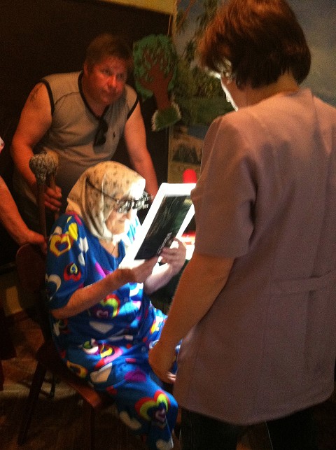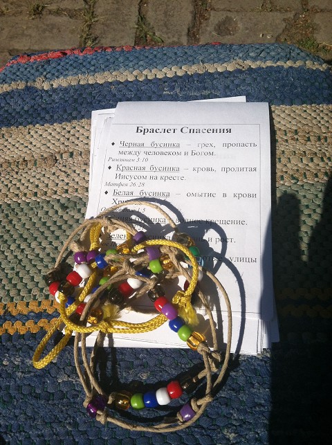 After eating enough to satisfy the eyes of the babushkas we would go back into the clinic room to start prepping salvation bracelets. We’d watch as Anya and Williams would ask each person in the room whether they wanted distance or reading- for the most part each chose reading. And you could see the faces of these people who hadn’t read for themselves in who knows how long- you’d see them change and contort as the words became clearer.