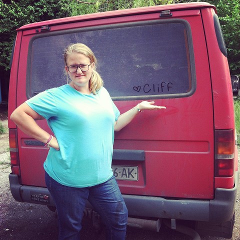 Once again we’d load the boxes together and [attempt ourselves] to load up the big red van.