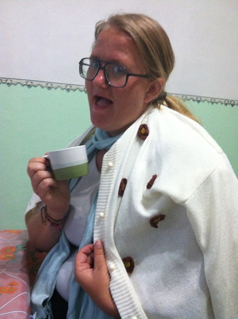 I don't know where the cardigan came from. If it was hers- or the churches- or from the lost and found but I do know this: