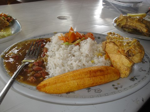 This is basically what I eat ALL THE TIME: rice, chicken, beans and some type of veggie