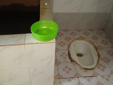 This is our bathroom.  That bowl is my shower.  If it hasn't rained in a while we bathe with brown water.