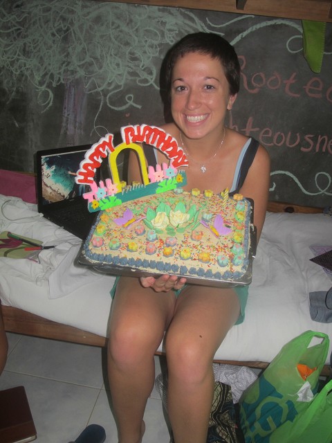 It all started with the fact that it is Kimberly’s birthday, and we needed a cake. Helen, who is the main lady who oversees the orphanage we are working at, took some classes at the culinary school, and is able to make cakes. We asked if Helen could bake Kimberly a cake, and I offered my assistance. Helen is only free when the kids are asleep, so at 9 pm I’m walking up the hill to the orphanage. I enter the kitchen, and see Helen just finishing up the measuring of the dry ingredients. I tell her “I’m your helper, so how can I help”, she says “you want to mix?” So I begin to mix the sugary substance while she peered at the instructions. While the baking is underway we begin the basic introduction conversation of where your from, how many siblings, how old are you, etc.