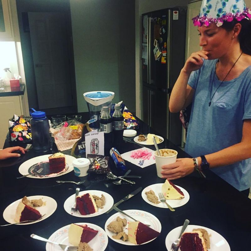 One of our first weekends, we had the privilege of celebrating Mary Catherine’s, my team mate and friend, birthday at Michelle’s cousin’s house. It was a night filled with Red Velvet Cake, ice cream, and tons of chocolate. It was a night we all will remember, and not just because of the treats! 😉