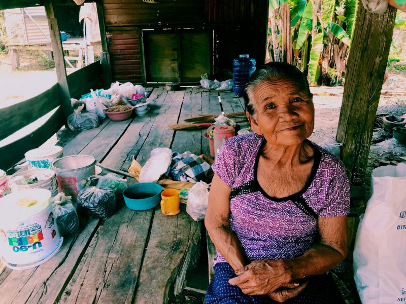About a week ago, I met Niat and Ma, two little old ladies who lived together in a small cement building. Ma wore a purple shirt and limped about the yard, giving us orders in her language even though none of us could speak it. Niat sat on the stoop in a worn white t-shirt and green skirt. At over 90 years old, she can no longer see, and she depends on Ma to care for her.