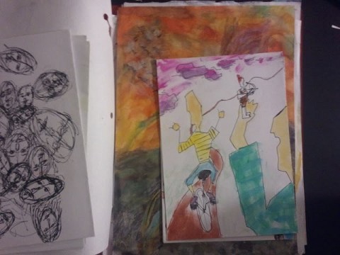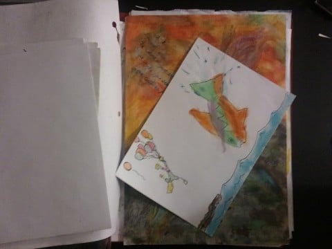 the kids papers and put them on the ground up front.