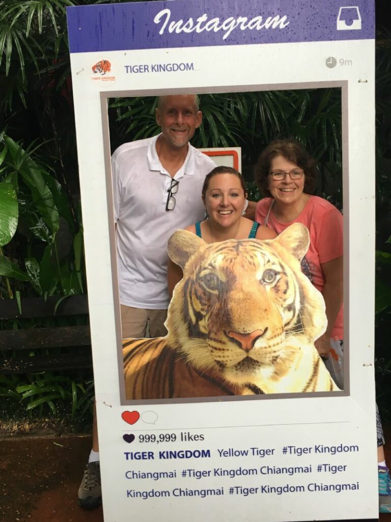 It wasn’t all ministry either. Since it was Mom’s first trip to Asia we made use of every free moment. We went to the Tiger Kingdom and pet some cute little baby tigers and even a couple HUGE tigers. Dad and I went on an elephant excursion where we literally rode elephants bareback for 45 minutes. Then we bathed our elephant in a pond. It was crazy awesome.