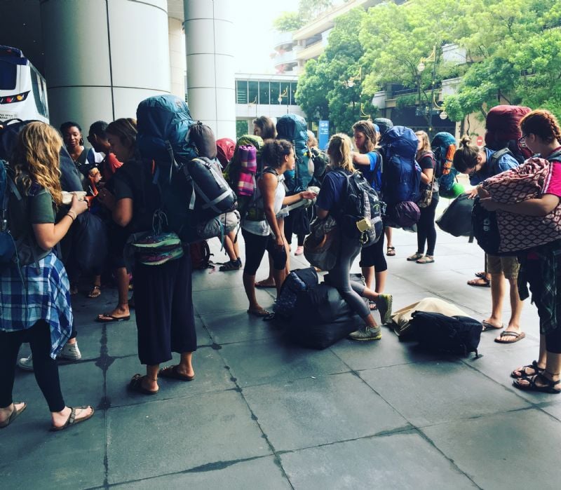 We lived in a room above the kindergarten and luckily we were able to use the AC for a few hours every night. We all lined up our sleeping pads and made the place our own.