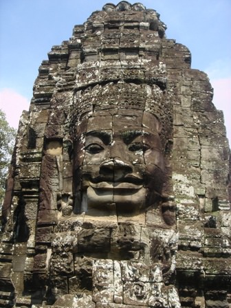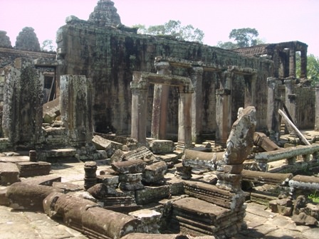 The ruins of one of the temples, Bayon, at Angkor Thom.