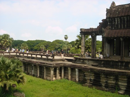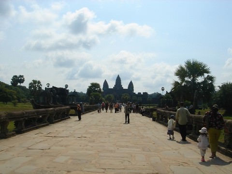 The ridiculously long walkway leading up to the main temple at Angkor Wat.