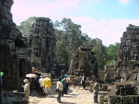 The ruins of one of the temples, Bayon, at Angkor Thom.