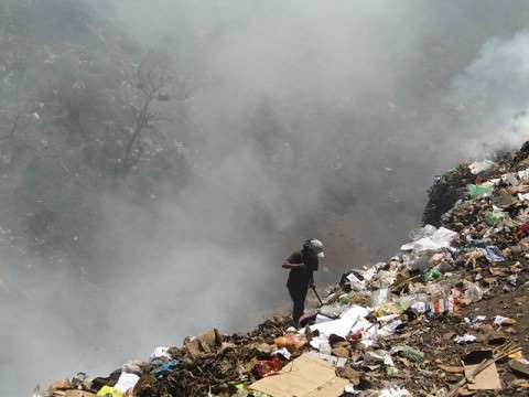 anything that they can reuse in their household. Finally, after the trash is thoroughly sifted through, workers set the trash on fire.