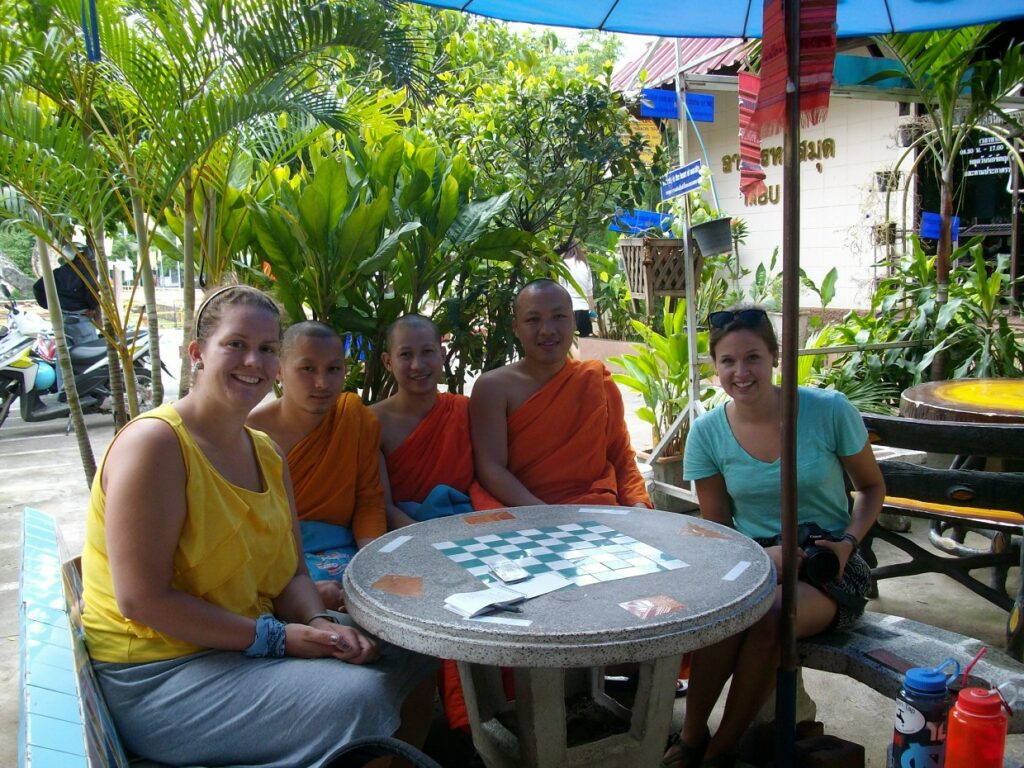 Yesterday was an ATL day here in Thailand, which means you go to the Lord in prayer to ask Him to direct you in what He has planned for the day. I had been seeking the Lord and what He would have me do, this lead me to going to monk chat. So in our morning team time I had mentioned this and another teammate Megan said she would love to go too. The two of us decided to go after lunch and to take the time to share life with these gentlemen. Monk chat is just the opportunity for the monks to practice their English and to share life with them. Right after lunch we left Zion and began our ATL day, heading to the temple.