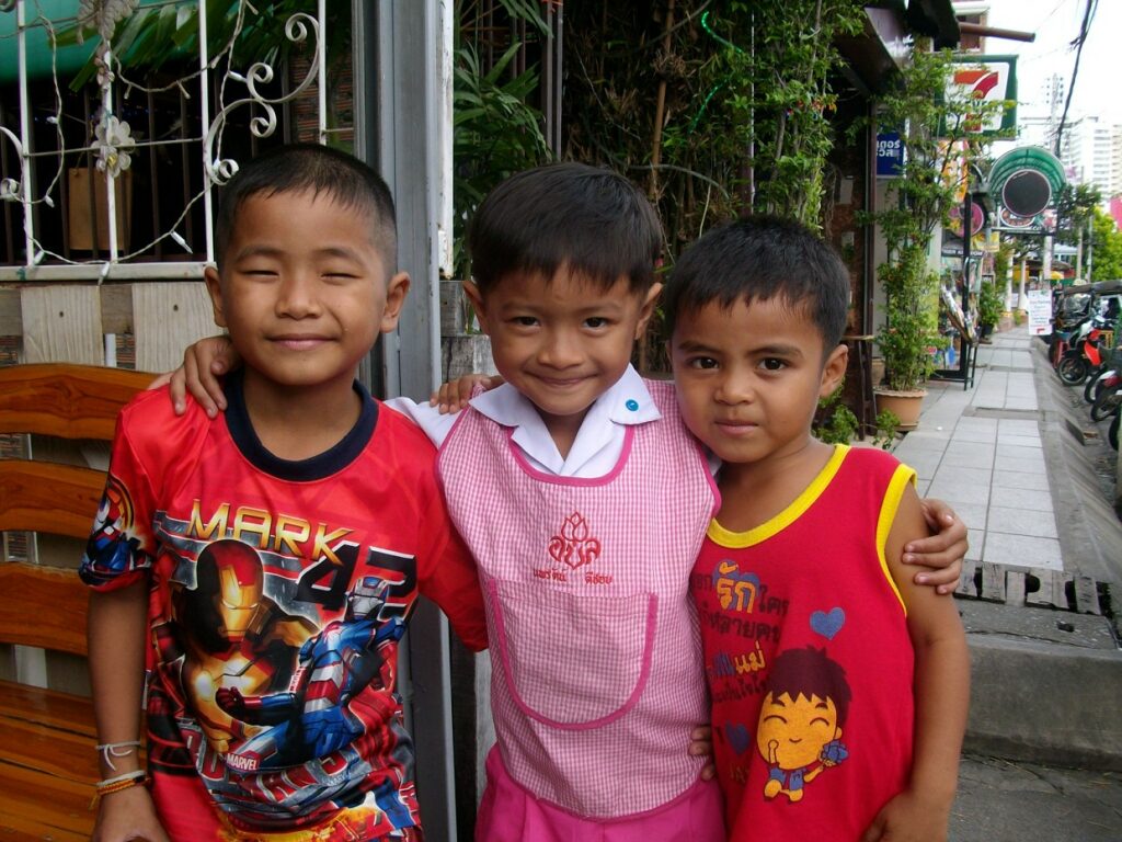 After leaving this temple, we decided to stop by the temple where Mai was. There we received a FREE back massage and meet 2 gals from England, whom we chatted with about the new baby George. We had a brief chat with Mai to learn that she was here in the city for the week volunteering for the holiday. The spirit led us to her and we thought we were going to share about our faith but this opportunity didn’t arise so we kept moving. Next we met a man on the street selling bracelets to ward off evil spirits. Megan decided to buy one to remind her to pray for Thailand. Continuing our journey we cut down the bar street which is the street where we are staying. There we meet 3 kids whom we played with for a bit. After playing for a few minutes, we continued our journey and were headed home for dinner.