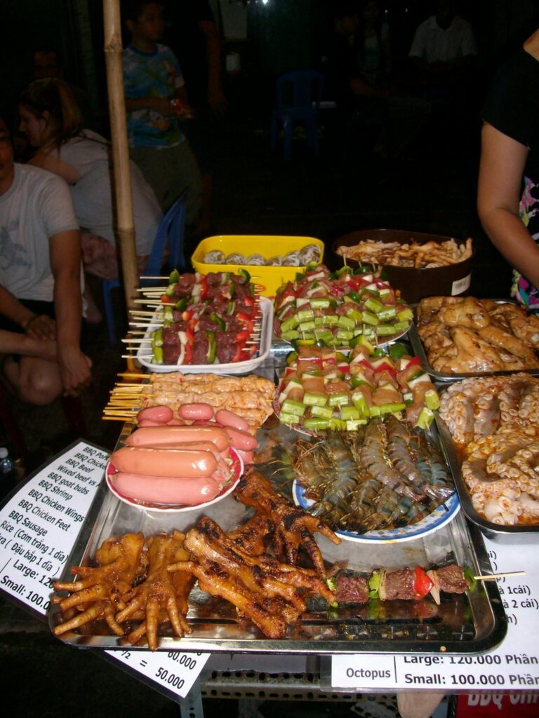Delicious street food complete with chicken, beef, octopus, shrimp, hotdog looking things, chicken feet, BIG shrimps(I think), and rice! I had the chicken and rice this night.