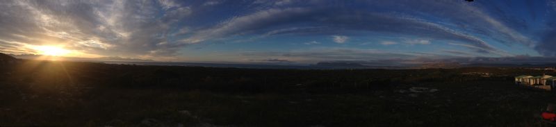 Sunrise from the hostel, Indian ocean ahead and mountains on both sides.