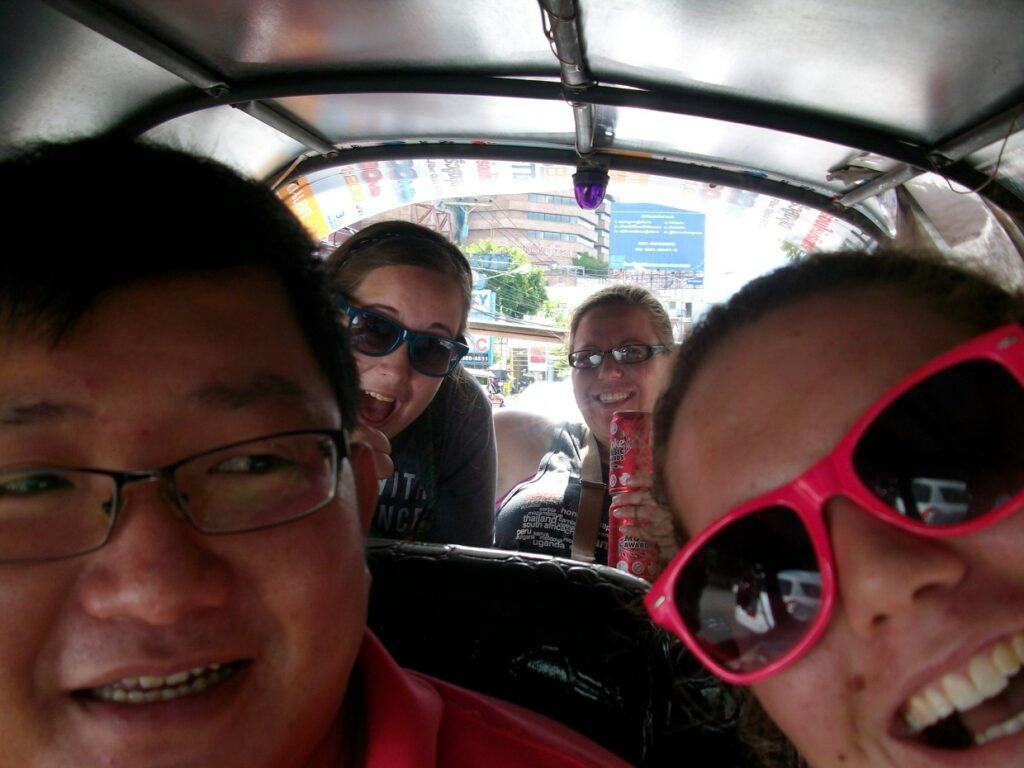 We have officially finished our first week of ministry and have begun our second and final week in Thailand. This month was a short month of ministry due to the extended initial time we spent doing orientation to the Race and to Thailand. It was a fabulous first week of ministry, but very tiring playing with kids. They have so much energy and never want to see us leave. We had a great weekend and spent the day off just hanging out. Sunday morning, we went to this lovely restaurant around the corner, Butter is Better, and it has fabulous American cuisine to have brunch. It was the perfect way to start my day off with 7-grain French toast, went to the local mall in the afternoon, where I purchased a laundry bag and new cosmetic bag. I was so excited to have gotten these items, as I now feel I am truly ready for the next 10 months. We took a tuk tuk ride back to Zion café, which was very interesting, and I had the privilege of sitting right up front with the driver, almost on his lap. I also got a Thai massage with my wonderful teammate Megan in the afternoon. This may sound soothing to you, but this is not your typical massage. It was rough and involved lots of stretching, I was so sore when I woke up Monday morning. No pain no gain! The massage was well worth it, and I figured when in Thailand, do as the Thai do! We ended the day with a visit to the local night market, an awesome market set up only on the weekends. The trip included dinner of sushi and waffles.
