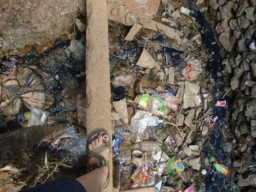 – We sometimes have to walk across a balance beam – below is garbage and sewer.
