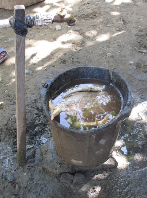 (washing the chicken after the be-heading)