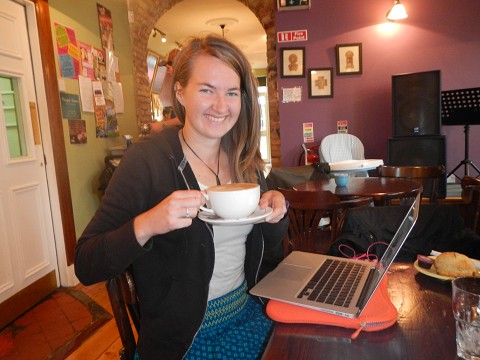 Having coffee at An tobar nua a christian coffee shop in Galway!