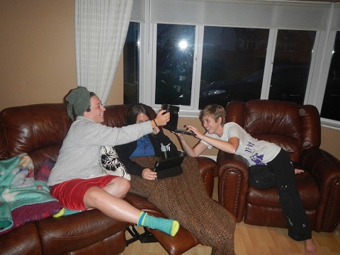 Ashley and Lindsays clever way to tape off the high spots in Frans house!