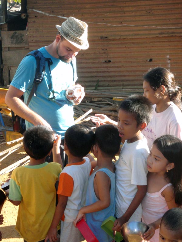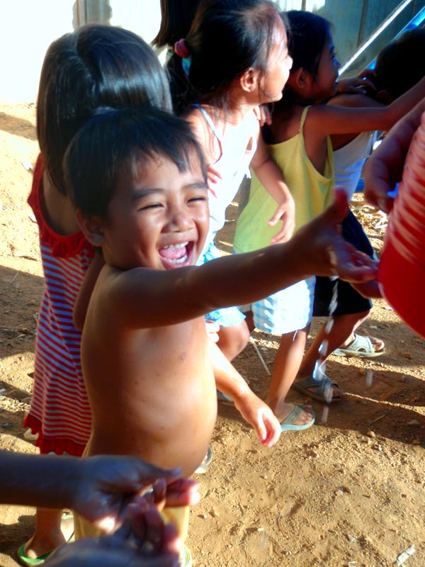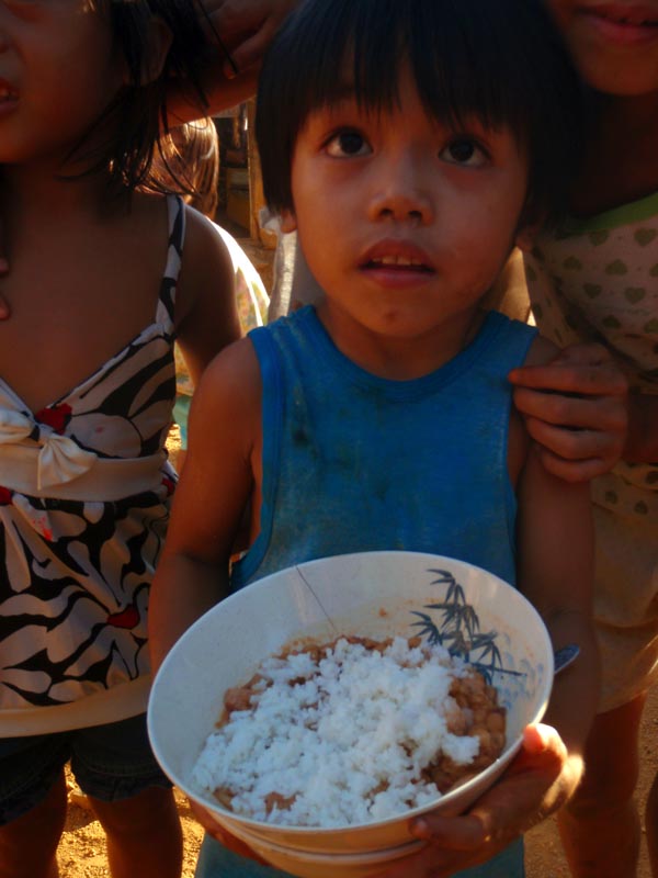 I felt as if I was really just trying to “soak it all in” today. As I was playing with the children I could not help but look around me and see the conditions these children were living in. It was just not a community like I have ever seen before. I kept trying to imagine myself growing up and living in a place like that. I always knew I had it good growing up in middle class America…but to have an experience like that takes it to a whole new level. You can hear all the stories you want and be told how bad other people have it compared to you…but until you experience it yourself…you really have no clue. Yet to see all the Joy and compassion everyone still has for one another touches me. They litereally have near to nothing but you would never know by their spirits. Even though my physical eyes see dirt, grime and despair…spritually, I see/feel Joy and compassion. We went back later in the day to distribue food. All of the kids came running with their bowls. As I scooped rice into each child’s dish I just kept thinking please God help this food not to run out because I will not be able to turn anyone away. Thank the Lord we had just enough to feed those who came! I learned that they take food to that specific community every Monday, but it is ususally the only GOOD meal they get a week (except for the lucky few who go to school and get a meal there). I am a person who likes to eat…and who likes to eat good food and a lot of it. Not knowing where their next meal will come from or when it will be…WOW!!! I can not even imagine living like that.