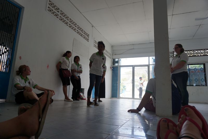 When we arrived, we climbed the stairs and filed into a tiny room for orientation with the school’s founder, SokEng Kat.