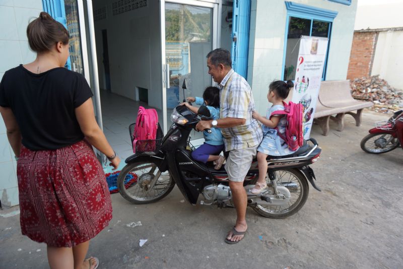 Hopping off their parent’s bikes, backpacks in hand, children run toward my team and me. “Teacher, teacher,” they call to us. “Can we play a game?” The choppy questions come almost naturally, with the English words they’re glad to remember.