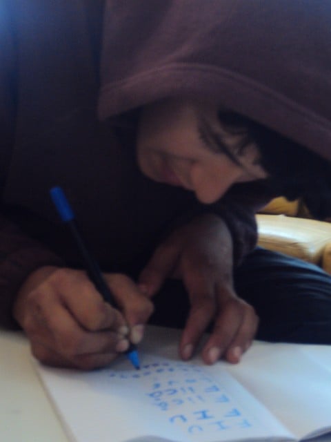 (This boy- was learning how to write for the first time.)