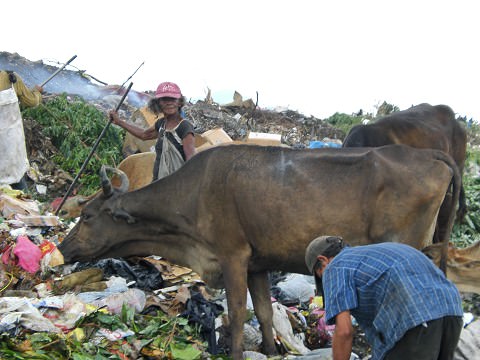 Cows eating from the branches we saw brought to the dump in the back of a truck