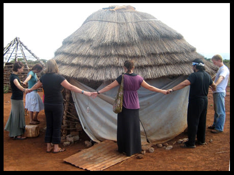 On our last day in Nsoko, we went over to Philile’s house to pray with her before he took Mcolisi to Manzini.  We found that she had left for the hospital at five the morning, so we pray over the household.  Twelve of us (including the little 7 year old girl) linked arms circling the rock and stick 6 feet by 6 feet house, where all seven of them live to pray for protection, health, and the love of Christ to surround the entire household.