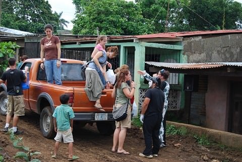 Unloading the truck after a muddy and bumpy drive into the barrio…