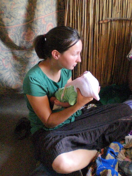 Early in the second morning after meeting Mario, Don receives a phone call that Mario’s wife was ready to deliver. We jumped into the van and begin the journey over dirt roads and footpaths. When we arrived, Mario had helped his wife deliver their fifth child in a little dirt room behind their bamboo house. We walked up to the house to find the child swaddled in clothes, and the other siblings running around without any clothes on. I checked on the mother, and Mario handed me the child. The blankets where still wet on the clothesline, so I took of my jacket and wrapped the baby in it. I asked if it was a boy or girl, and Mario and his wife hadn’t even had time to look. We all got in the van and drove to the small community clinic, where I helped with the afterbirth.