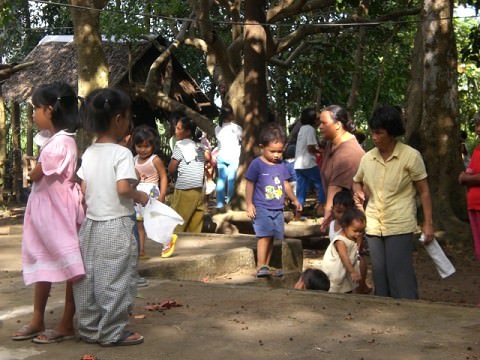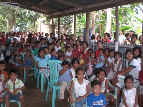 Usually, we ride for at least thirty minutes to an hour before we find ourselves unloading from the vehicle. But today was different, we stopped in front of a bamboo structure with part whicker siding up to your waist with rest being aluminum, as well as the common banana-leaf roof. I looked out the window of our jeep and saw 30-40 adults and 150 children lining the pathway into the church. At first glance, I thought – “We can’t already be here – I wonder what is happening – maybe some huge event…a wedding, a funeral, a band.” Then reality set in, and I realized – we were the huge event, and all the eyes were looking at us. We slowly walked through the path of people, shaking hands, talking to women and babies, and trying to grasp my mind on what was really happening.
