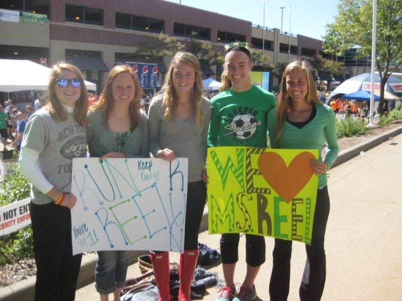 (A. End of my marathon B. Friend cheering crew C. Student cheering crew D. Boxcar team)