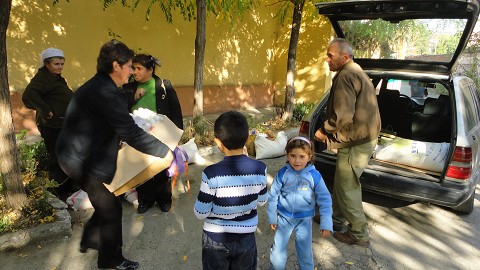 Some families have far to go to their homes from the center, and they have to carry off of this