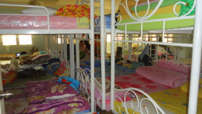 With 48 girls in one room the beds are pushed together.