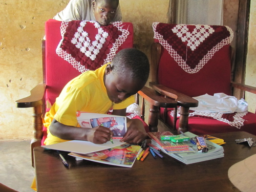 ball, some crayons, artbooks, and some school supplies. Below are some pictures